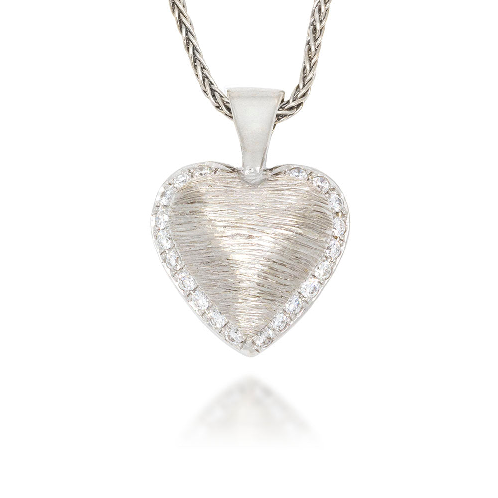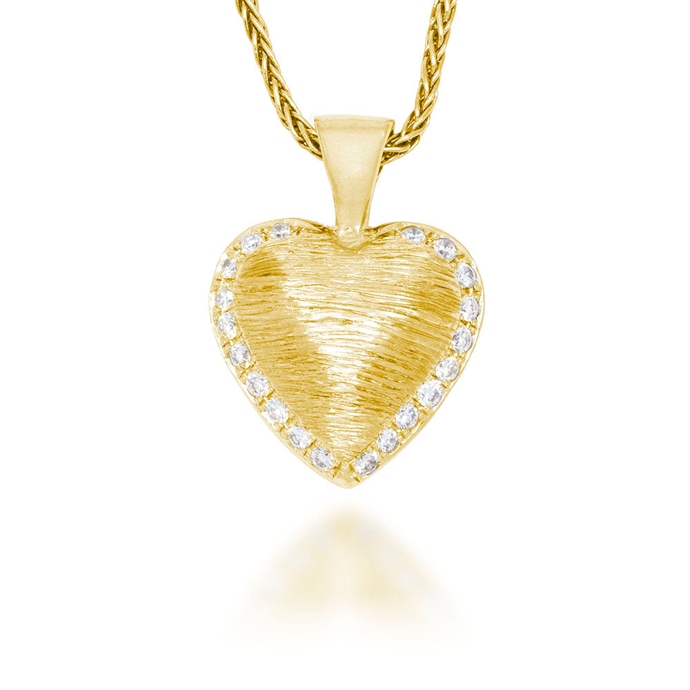 Regular price $2,260.00The Etched Heart Diamond Pendant blends artisanal brushed texture on an 18K yellow or white gold heart with a sparkling diamond halo for tactile, romantic depth.