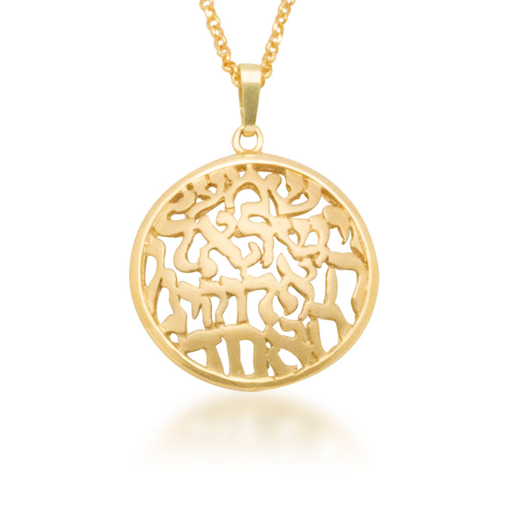 Regular price $920.00Carry faith close to your heart with our beautifully crafted 14K Gold Domed Shema Israel Pendant. Featuring the profound "Shema Yisrael" prayer in intricate, cut-out Hebrew calligraphy, this pendant's unique domed (bombé) shape creates a stunning 3D effect that catches the light and rests comfortably against the chest. Framed in a polished circle, it is a timeless statement of heritage and the perfect meaningful gift.