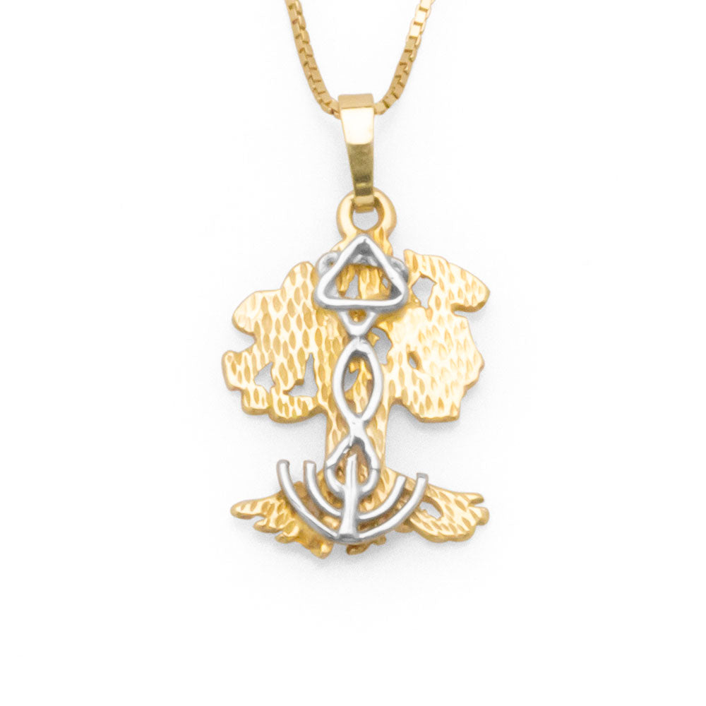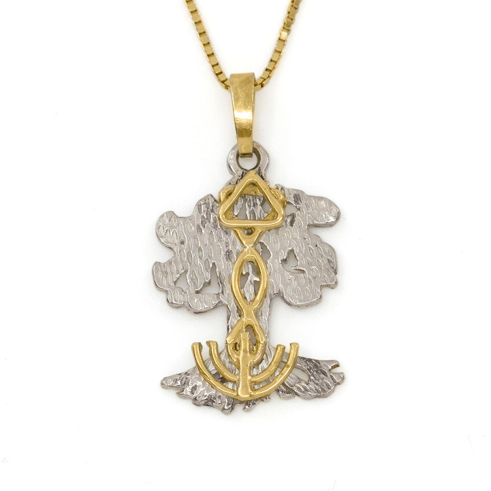 Regular price $750.00The Olive Tree Grafted-In Pendant was designed by Danny Eliav for Kay Arthur and the Precept Ministries Israel Tour. Kay had asked Danny to rearrange the symbols in the messianic seal to better reflect the teaching in Romans 11. The menorah as the roots of the Tree, representing Judaism, the fish as a symbol for Christianity, and the star of david to mark the synergy of the faiths at the top of olive tree.