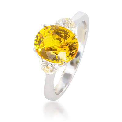 Regular price $8,600.00This exquisite three-stone engagement ring showcases a radiant oval yellow sapphire flanked by half-moon diamonds, all nestled in an elegantly refined setting. The thoughtful composition allows light to dance across each facet, producing a captivating luminescence that speaks to both classic sensibility and modern refinement. A masterwork of precision and artistry, this piece transcends fleeting trends to become a cherished symbol of enduring devotion—one that will be treasured across generations.